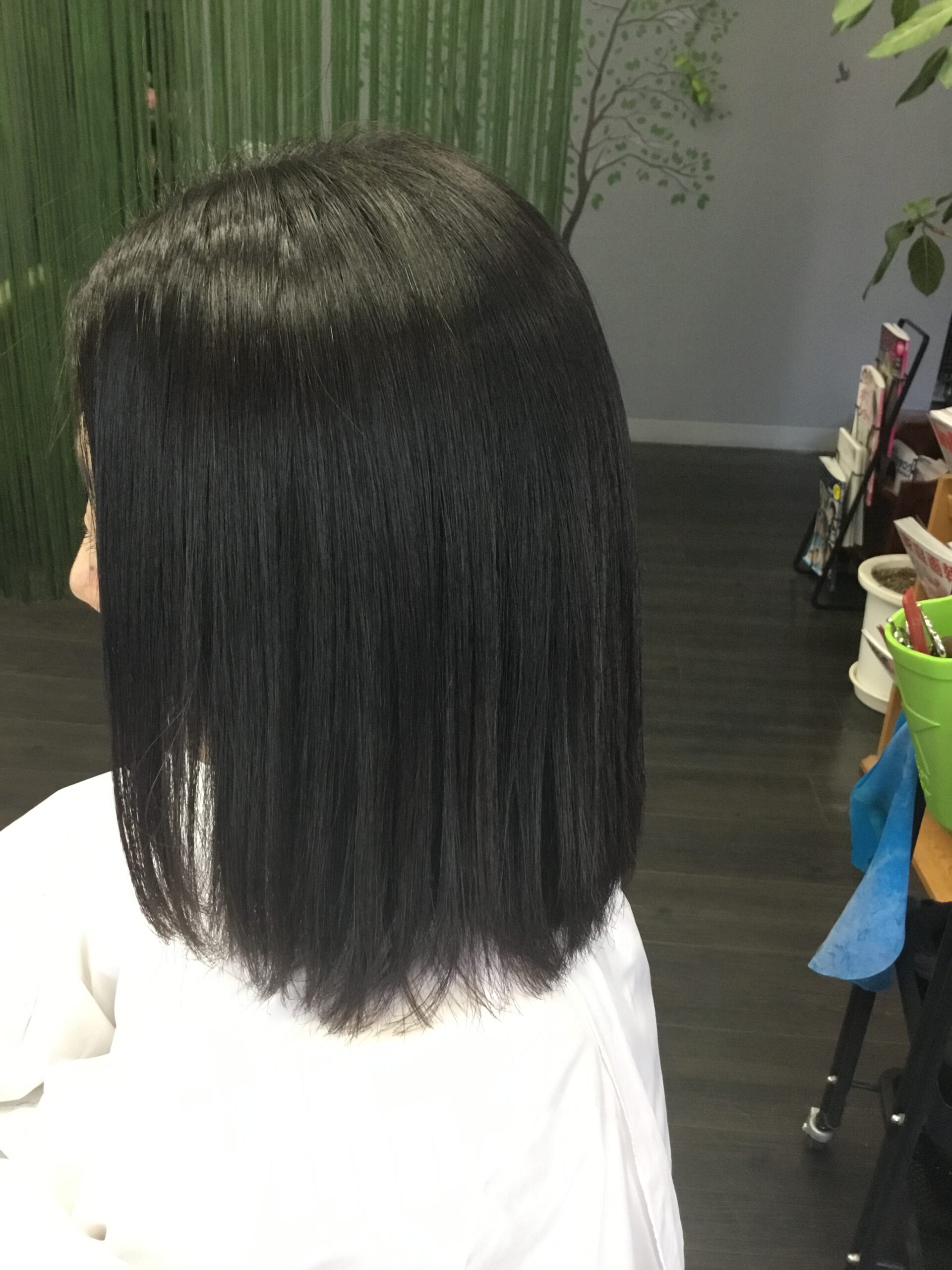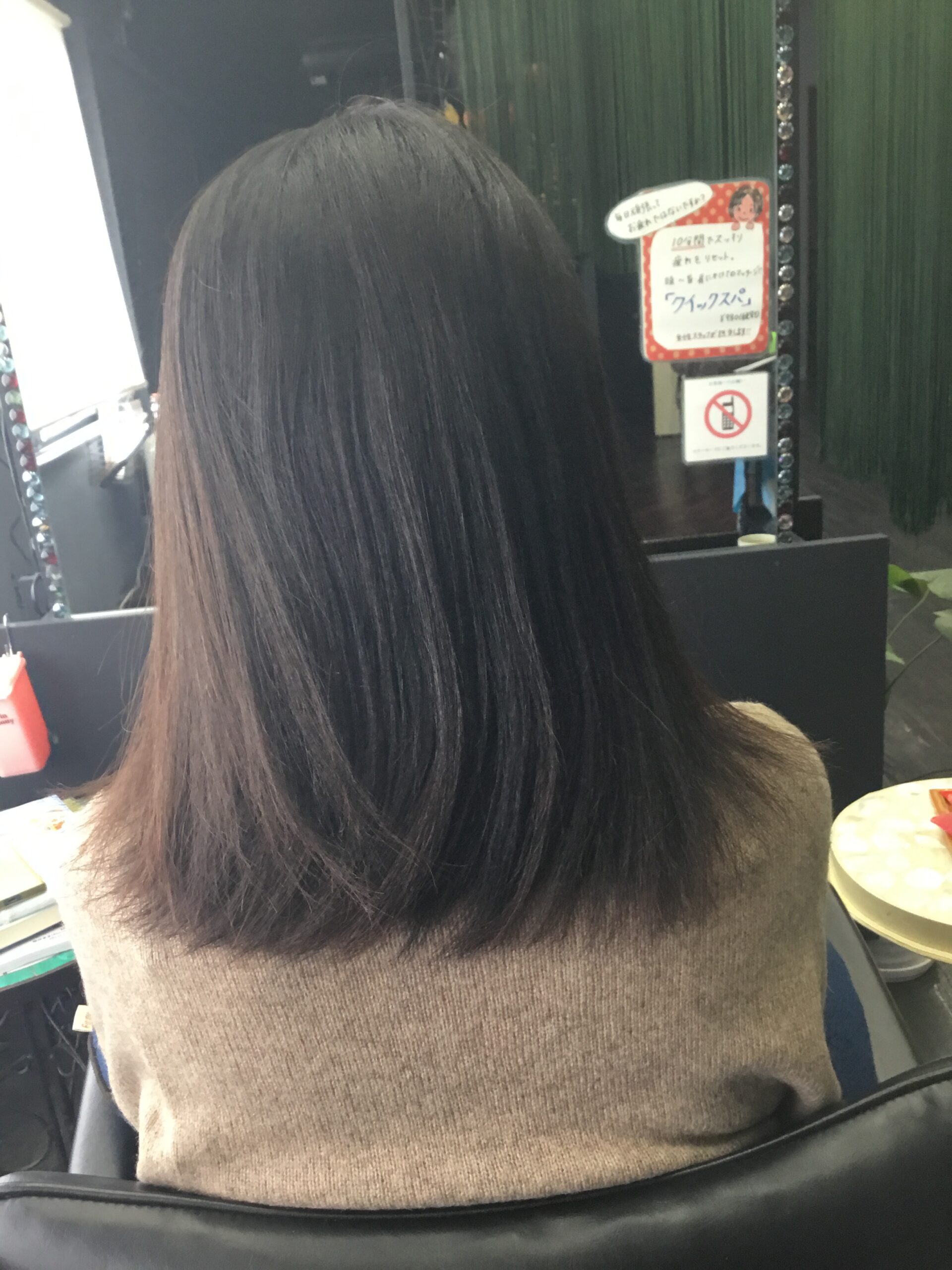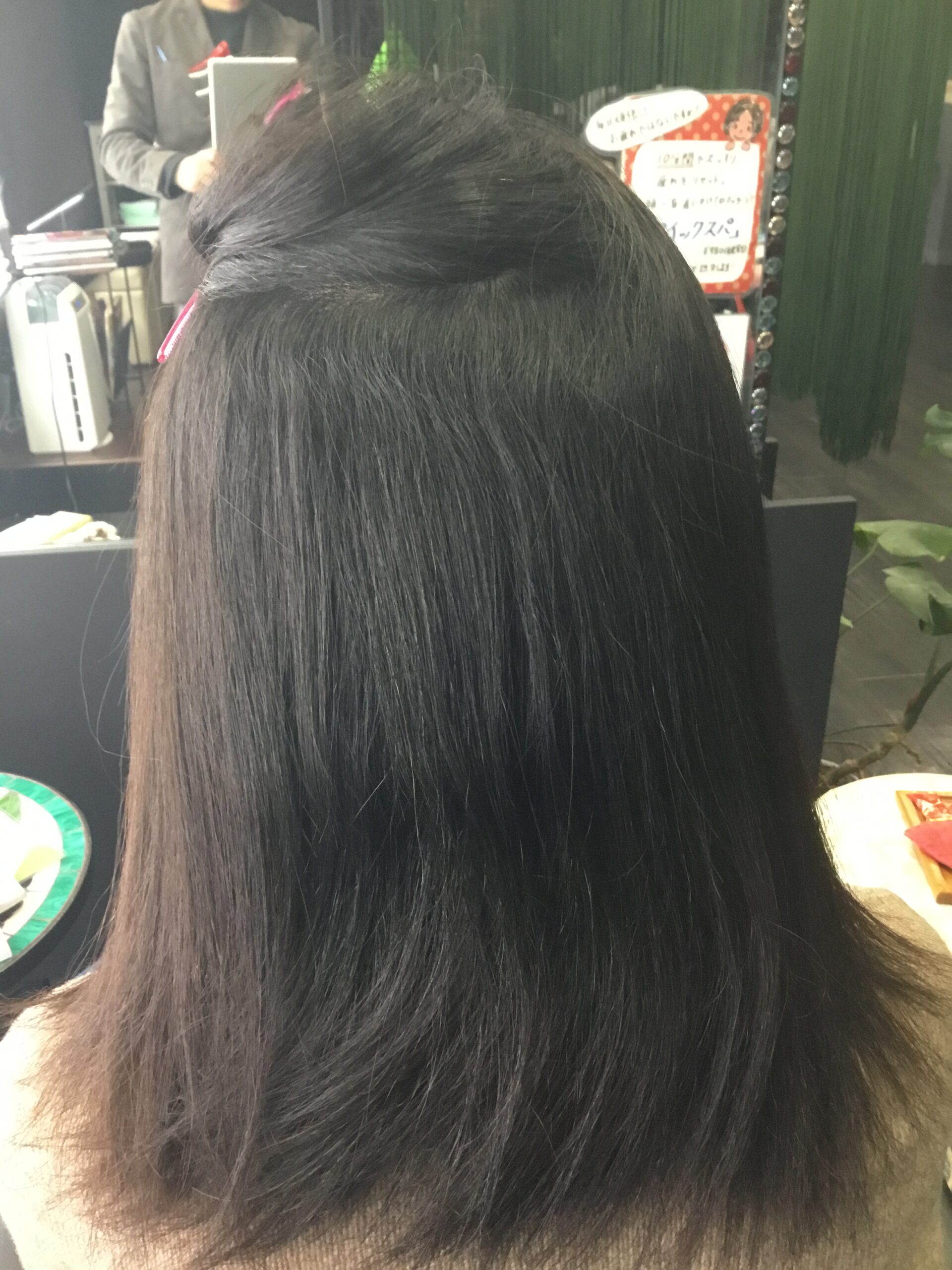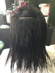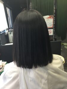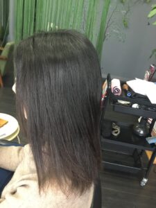 ↓ アイロン後は2液処理、お流し、ブローで仕上げでございます。クセも伸びて、キレイに仕上がりました!