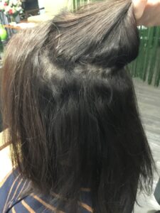 ↓ 表上よりもバックセンターの部分のクセがお強いです。生え方も影響していると思われます。